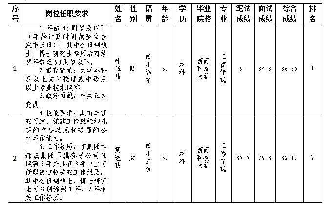 根據(jù)綿陽市城市停車管理有限公司發(fā)布的競(jìng)聘公告及競(jìng)聘相關(guān)規(guī)定,經(jīng)筆試、面試等程序,現(xiàn)將筆試(面試)成績(jī)予以公示。